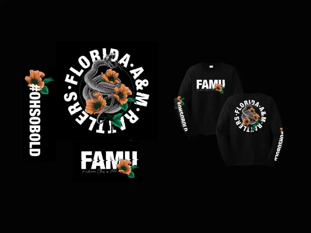We created the official merch for FAMU’s Freshman Class of 2007 15-Year Reunion. Our bold design was printed on t-shirts, hoodies, pants, and mugs—and became a unifying symbol for Rattlers during the weekend’s events.